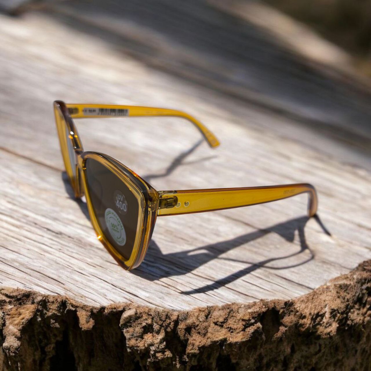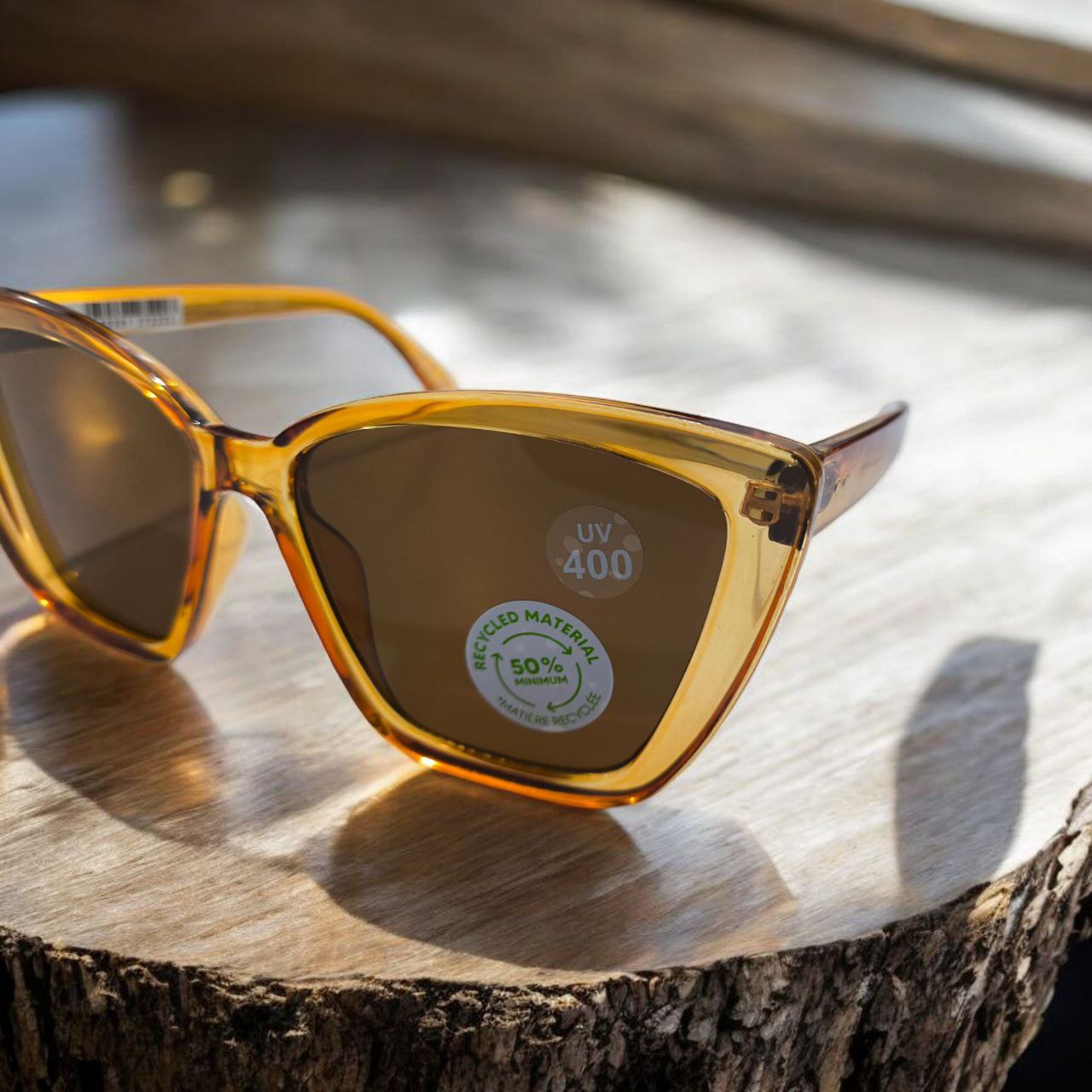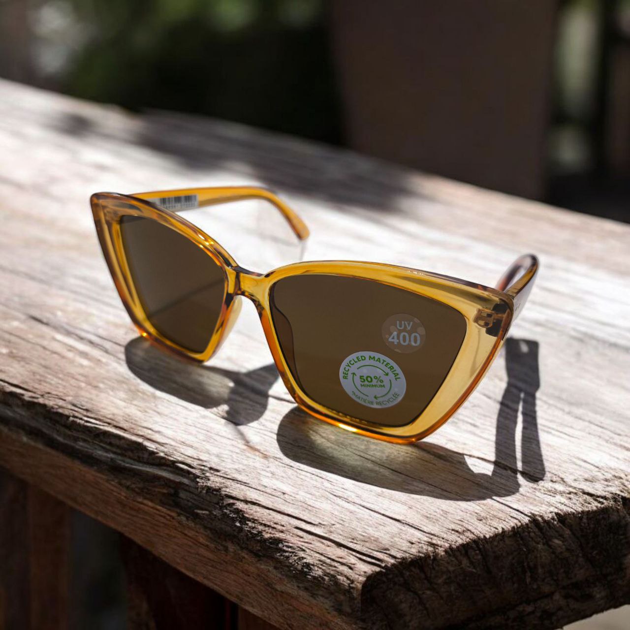 عینک افتابی فریم مربعی با گوشه های کشیده به سبک گربه ای و رنگ نارنجی شیشه ای، ترکیبی از جسارت و لطافت را در استایل تو به وجود می آورد.